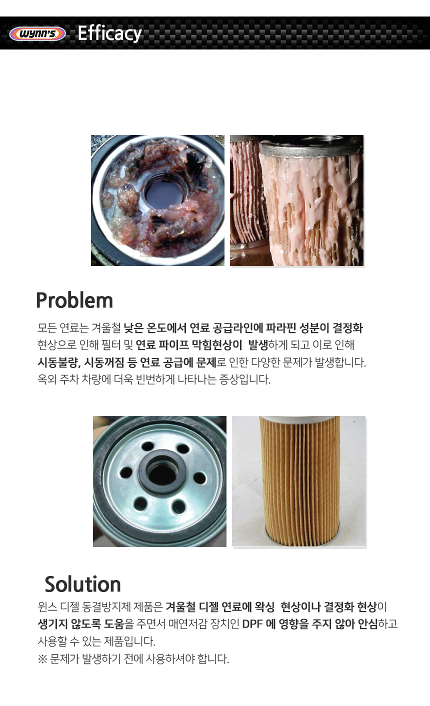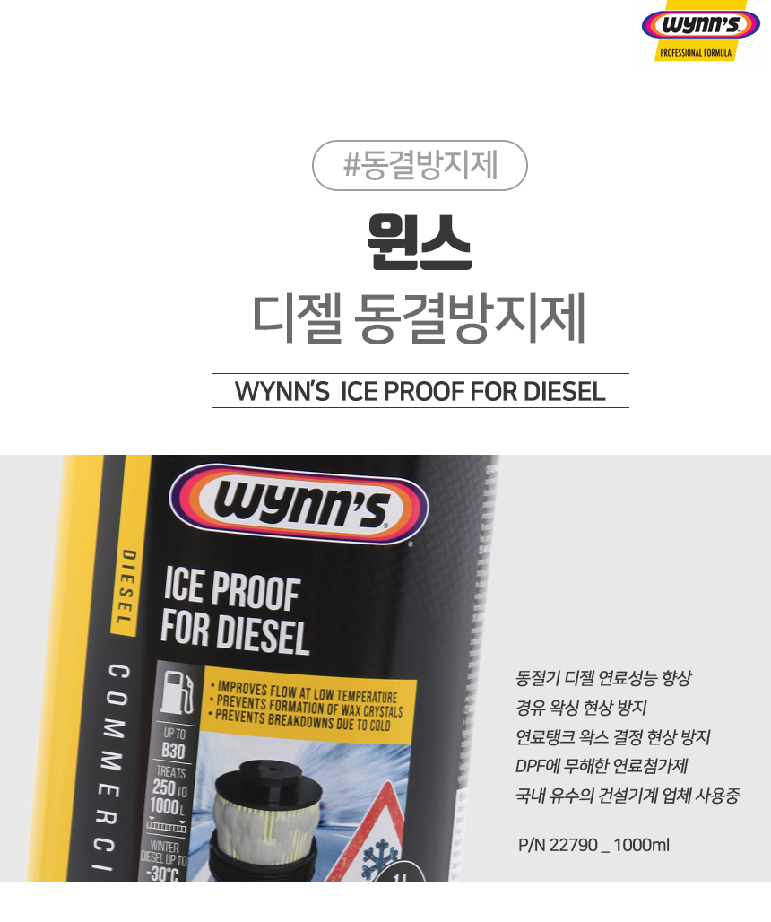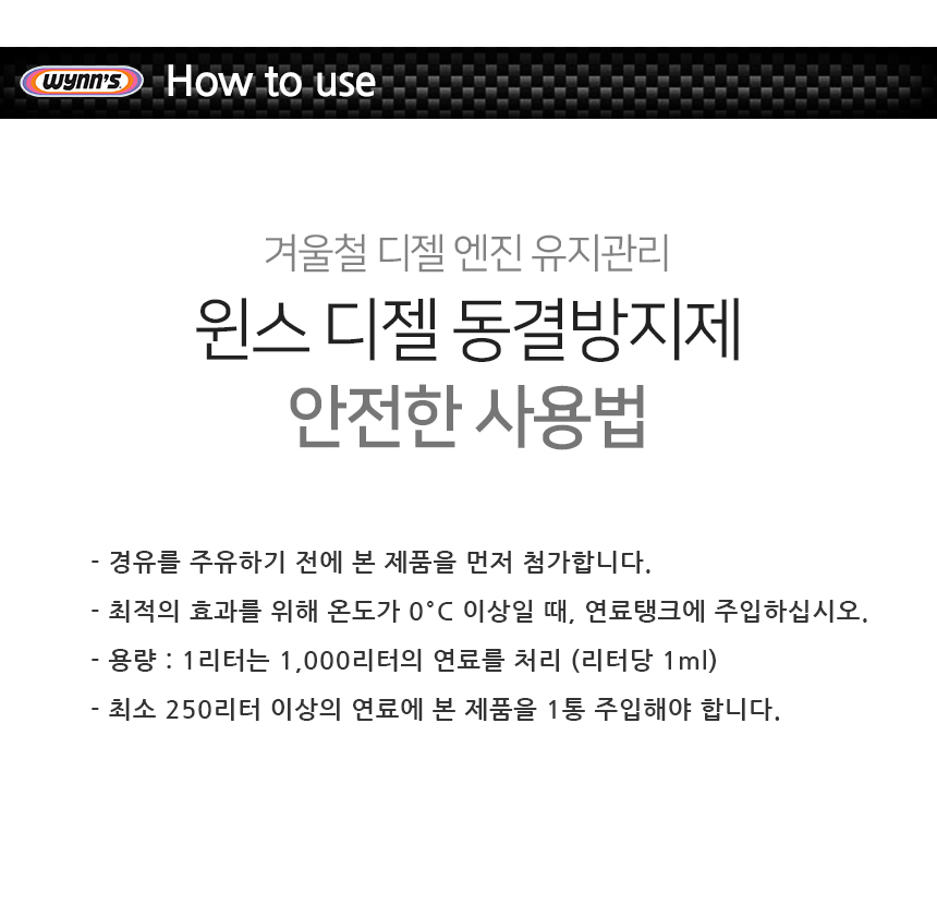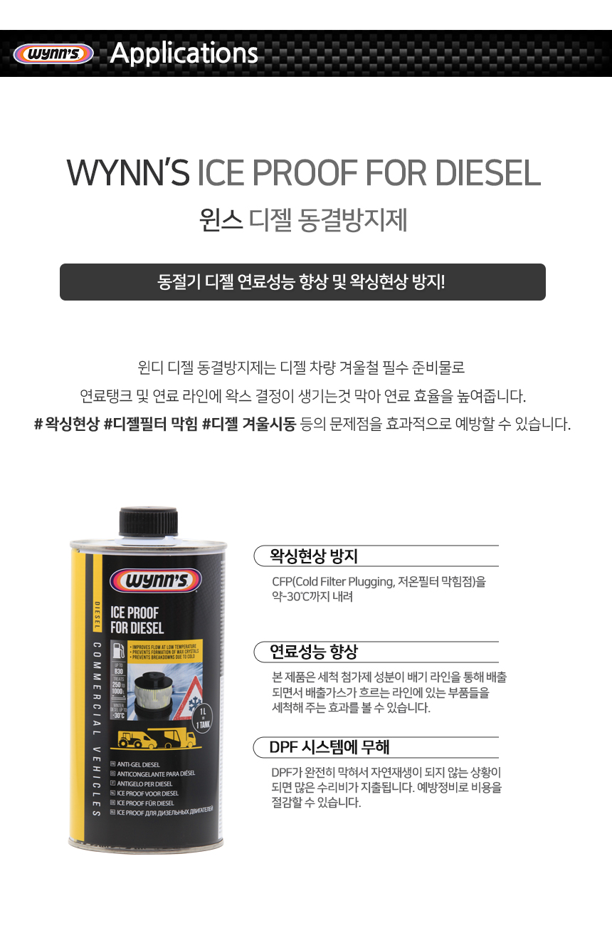 겨울철 경유의 저온 유동점을 향상시켜 왁싱현상을 방지해 주는 제품입니다.