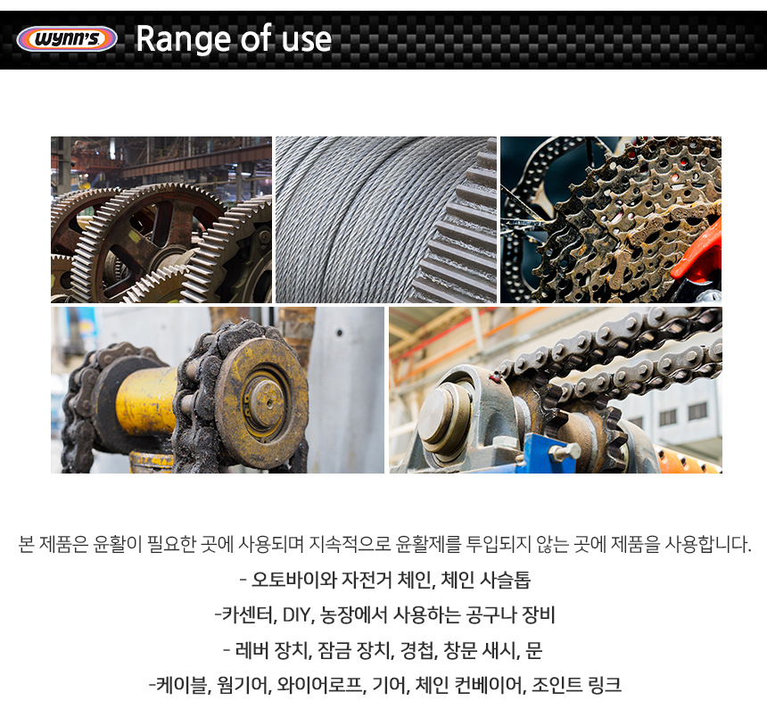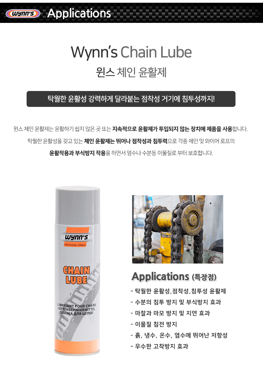 높은 침투력을 요구하는 체인이나 와이어로프, 핀부싱 등에 사용하는 제품입니다.